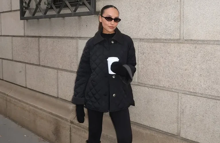 /На фото/ Жінка носить пальто-шарф Toteme у поєднанні з бордовою сумкою Chanel чорною шапкою-біні, сонцезахисними окулярами та бежевими штанами. Якщо говорити...